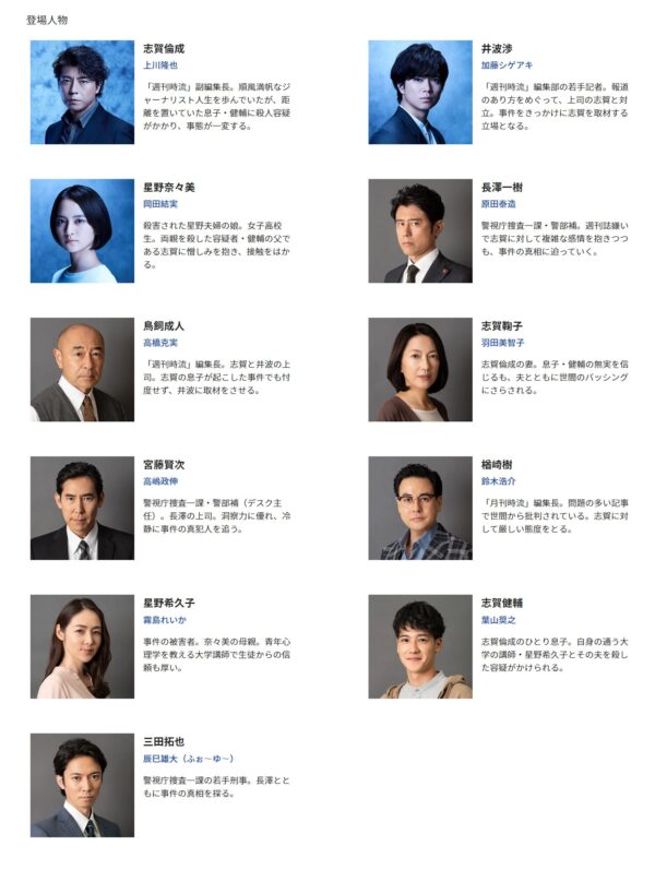 容疑者家族となった週刊誌記者役に上川隆也が挑む!