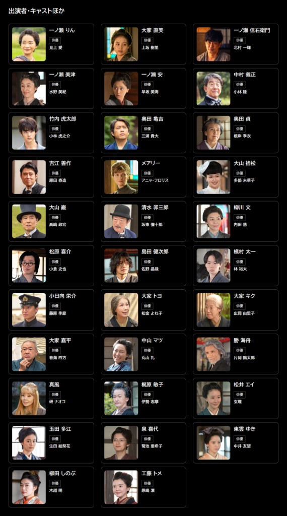 明治15年、栃木県那須地域の村で一ノ瀬りん(見上愛)は母の美津(水野美紀)、妹の安(早坂美海)、そして、元家老の父・信右衛門(北村一輝)とつましいながらも幸せな日々を送っていた。
