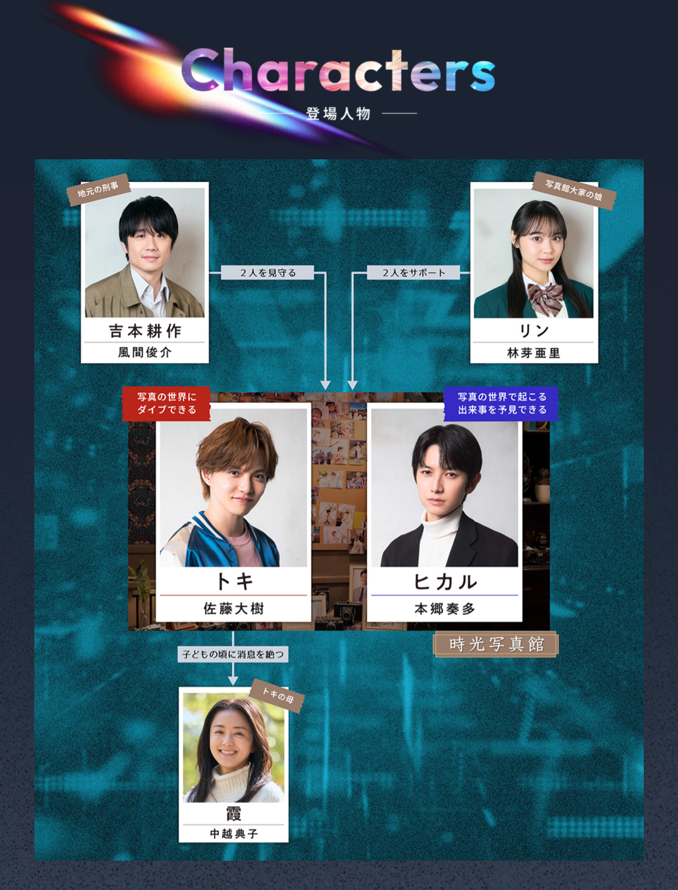レトロな写真館を営むトキ(佐藤大樹)とヒカル(本郷奏多)は、写真を通じて過去にタイムスリップする不思議な能力を持つ。